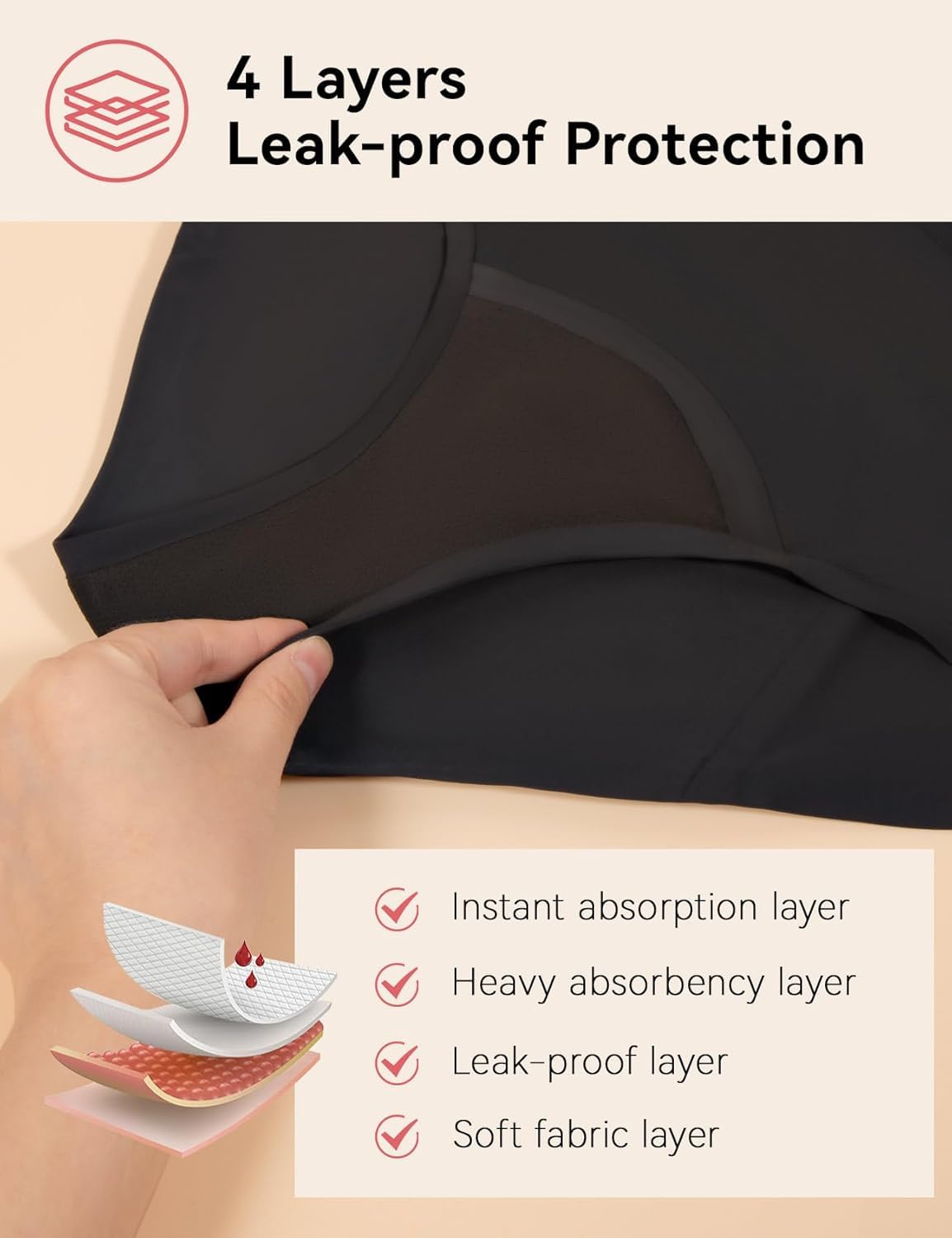 - Reliable Leakproof Protection: How do womens incontinence panties keep me dry? Feature a 4-layer absorbent core at the front and back for full coverage. Whether bladder leaks or everyday discharge, our leakproof womens incontinence underwear keeps you protected all day, so you can focus on your day, not your underwear