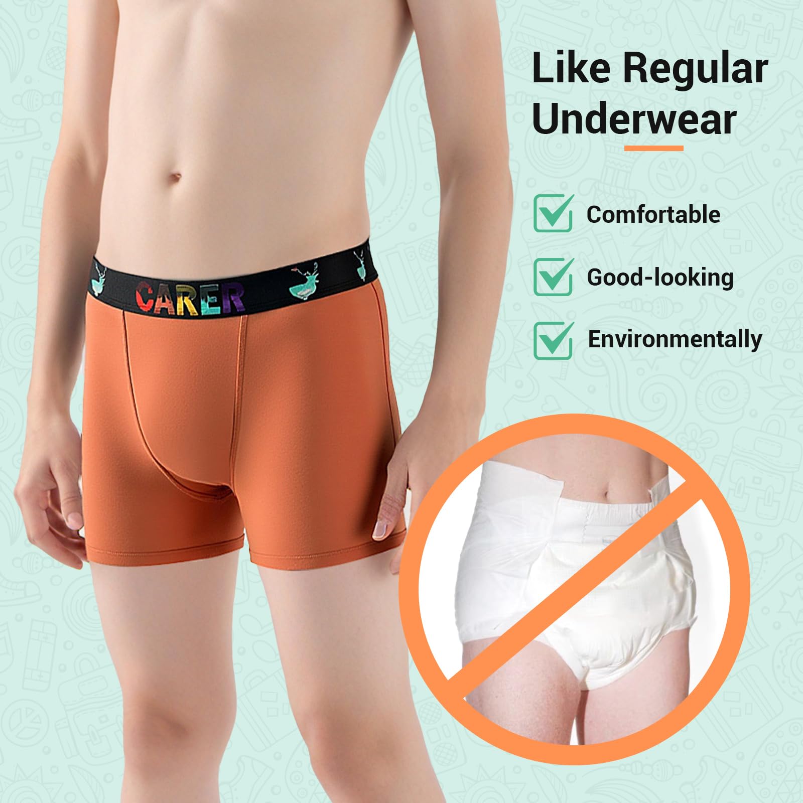 - Perfect for Growing Boys & Active Lifestyles: Designed for school-age boys (ages 4-18), including those with special needs or potty training delays, CARER incontinence underwear for boys offers reliable protection during school, sports, and everyday activities, keeping your child comfortable and secure all day long