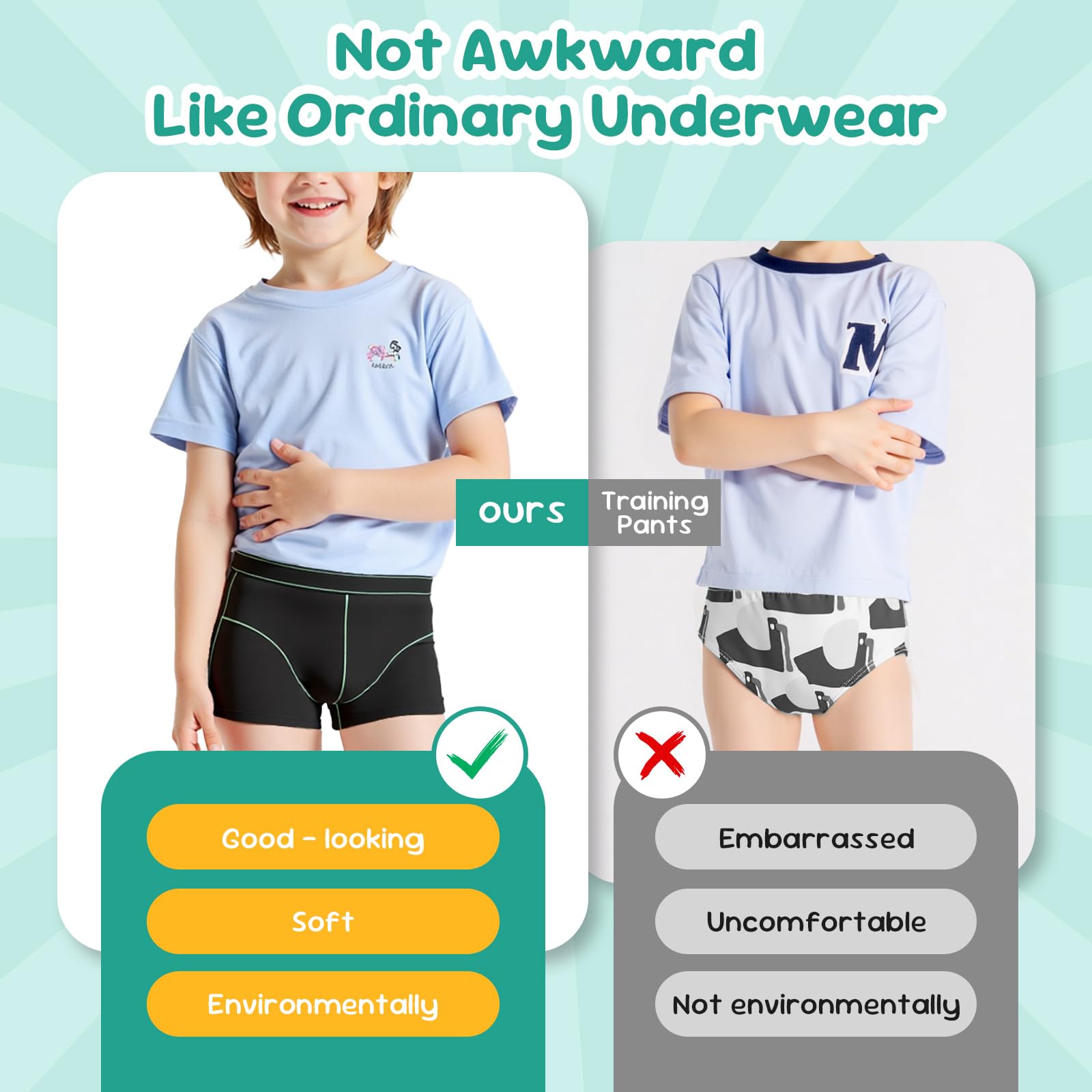 - Ease Care: Kids leakproof underwear is machine washable and reusable. This makes it a smart choice for busy families to save time and money. Ideal for school-age boys, including those with special needs, waterproof underwear for kids offer dependable protection during sports and daily activities