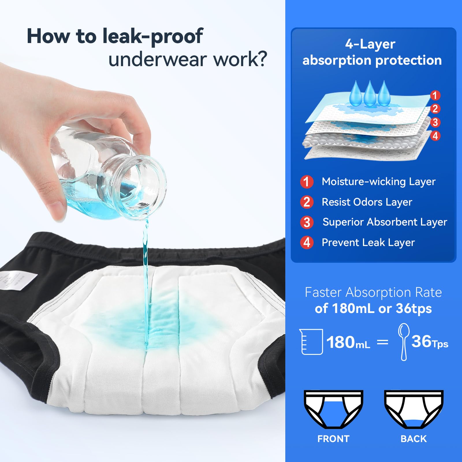 - Protection for Moderate to Heavy Incontinence: CARER mens incontinence underwear are designed to absorb urine and prevent leakage. With an expanded absorption area, it can hold up to 6 oz (180 ml) of fluid. These incontinence underwear for men is ideal for moderate to heavy urinary incontinence.