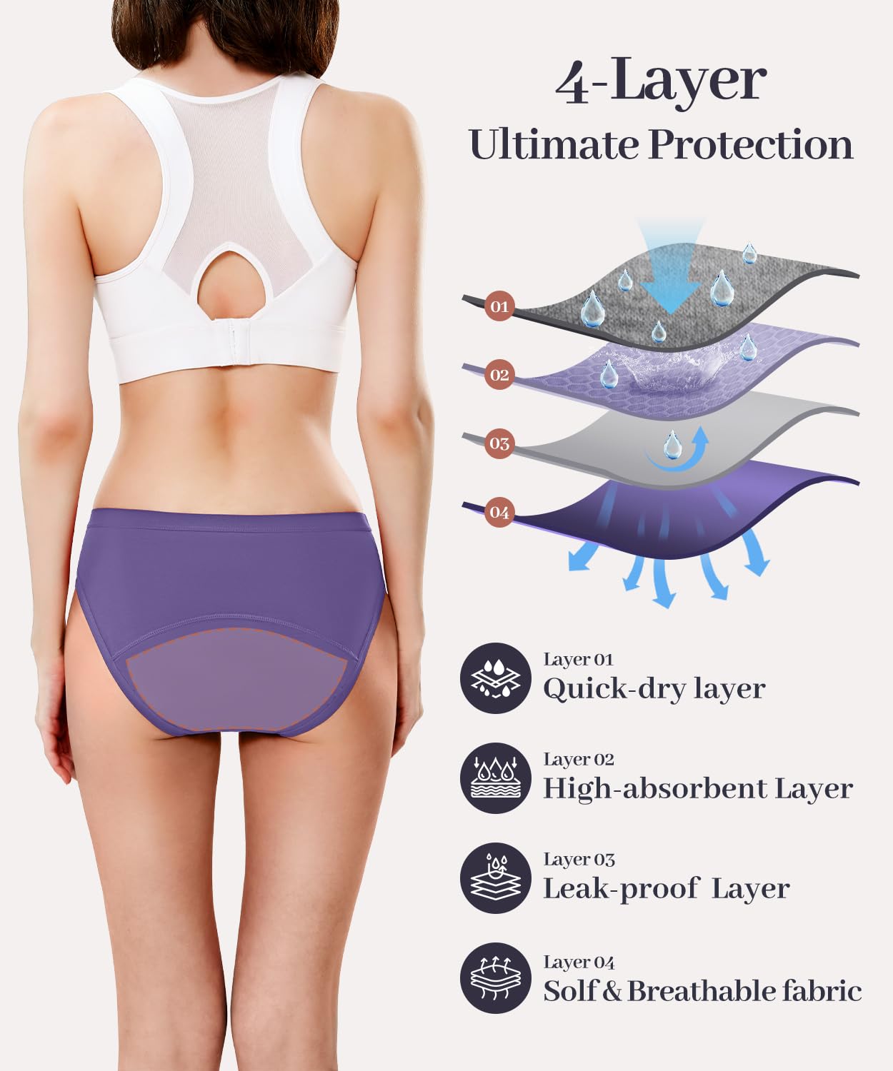 - 【High Absorbency Period Pants】 Designed as reliable period underwear for women, suitable for pre-period and post-period days, light to moderate menstrual flow, light spotting, and everyday discharge. With an absorbency capacity of 50–60ml, these leak proof underwear for women provide dependable protection while staying slim and comfortable.