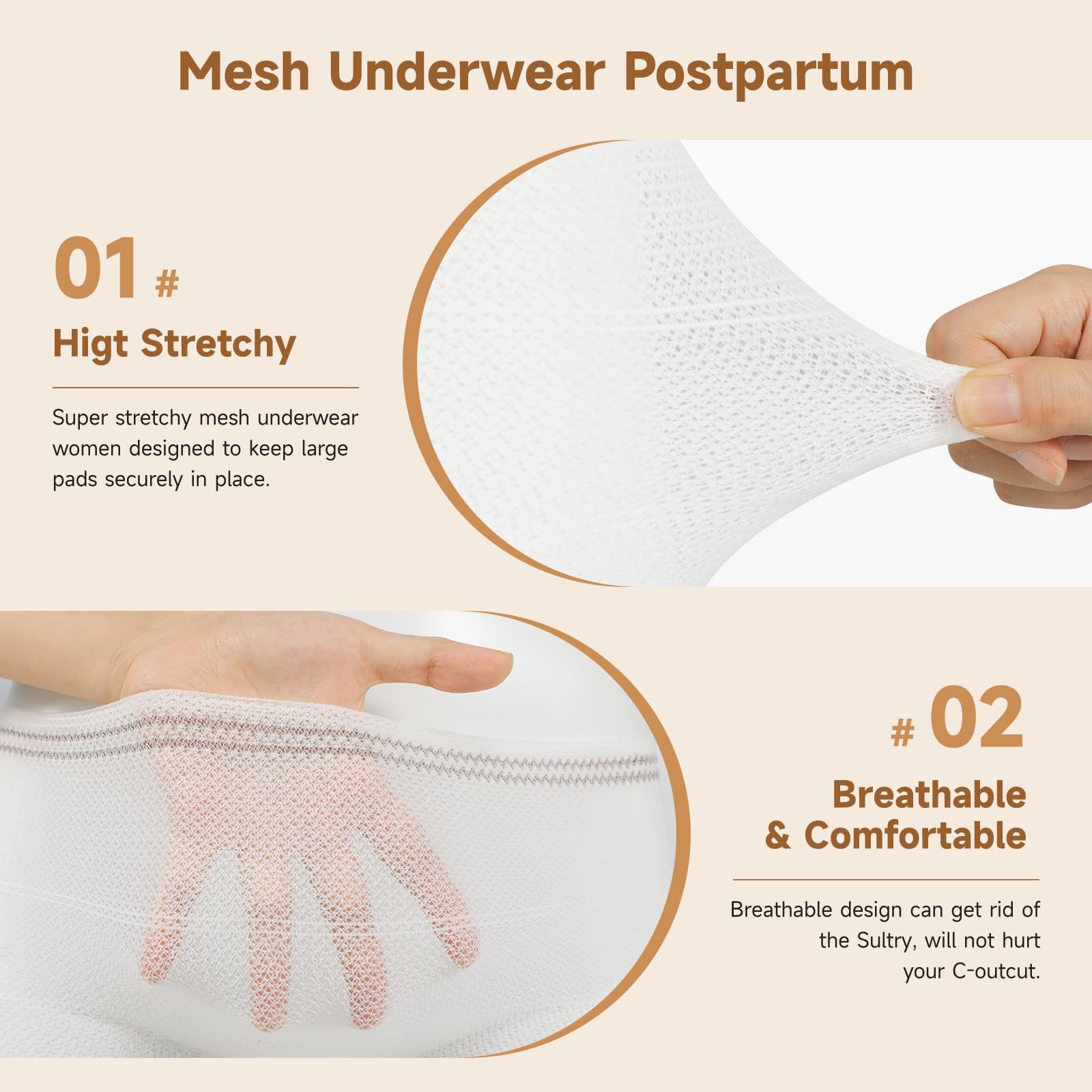- Our mesh underwear utilizes a fabric that is stretchy, light, airy and breathable. The best part – they don’t have an elastic waist band that puts pressure on your midsection or the incision line (should you have a C-section).Disposable postpartum underwear are best gifts for Women's day, Mother's day!